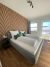 1 Schlafzimmer mit Doppelbett und ein Schlafsofa im Wohnzimmer